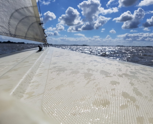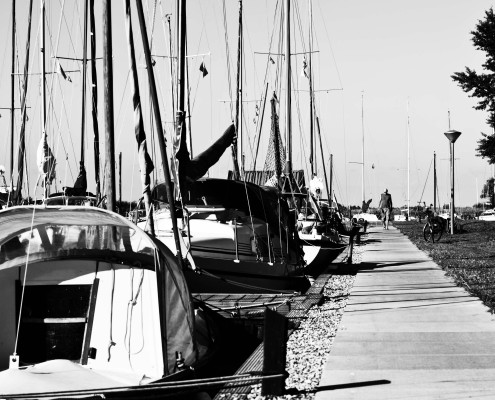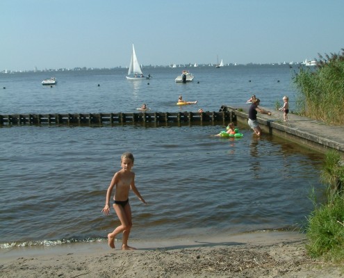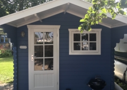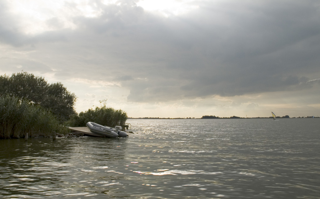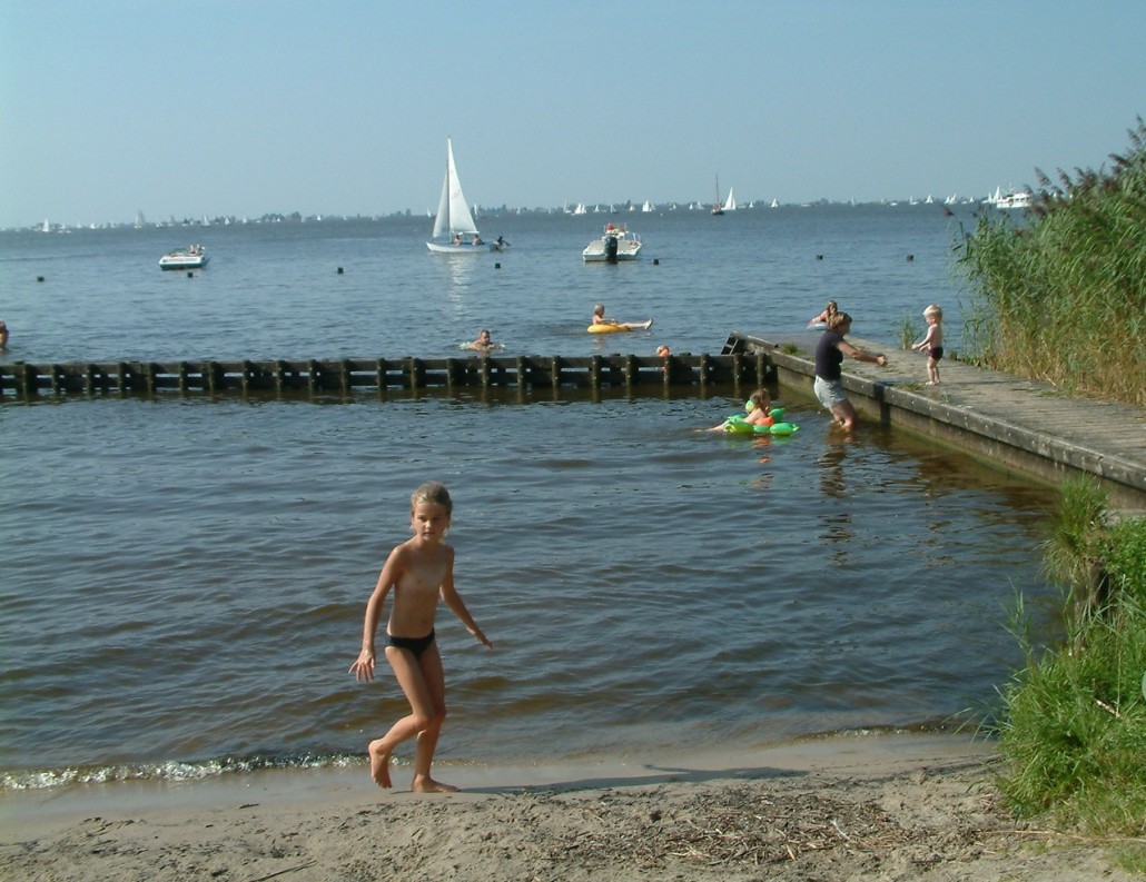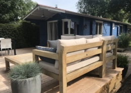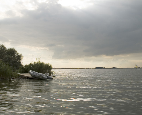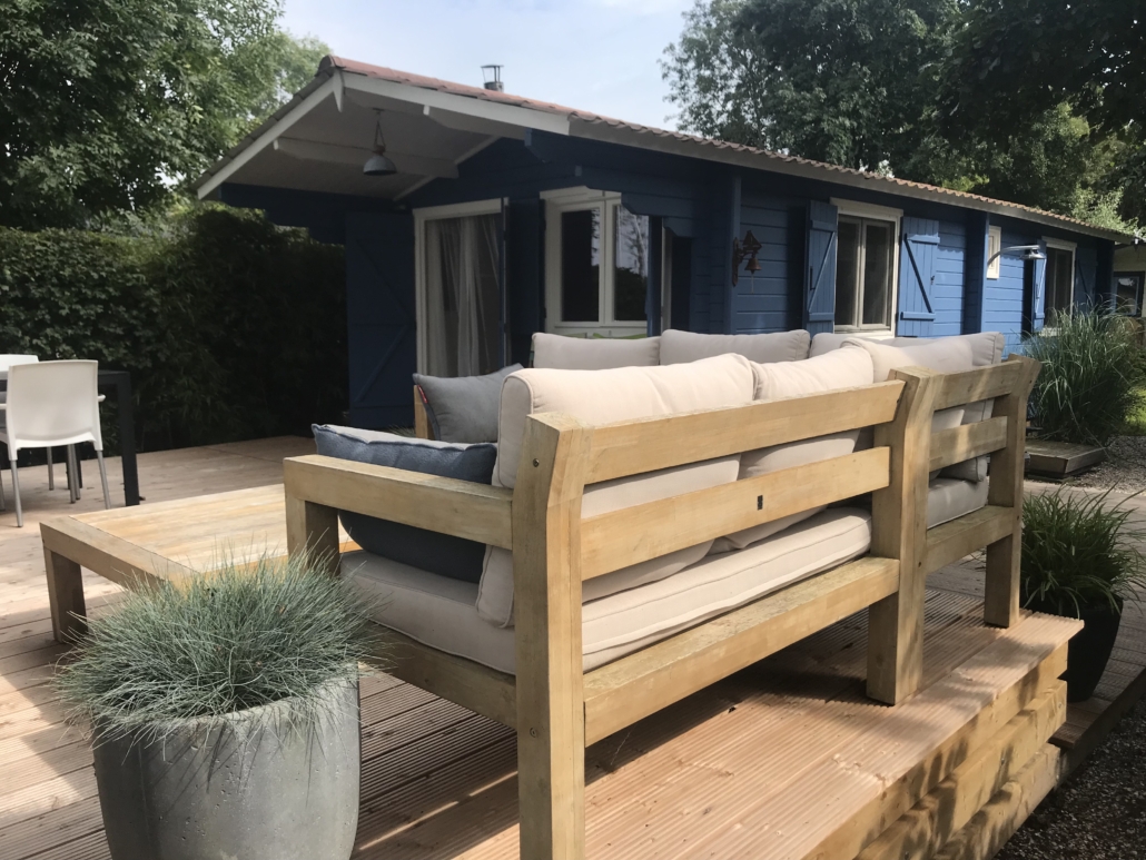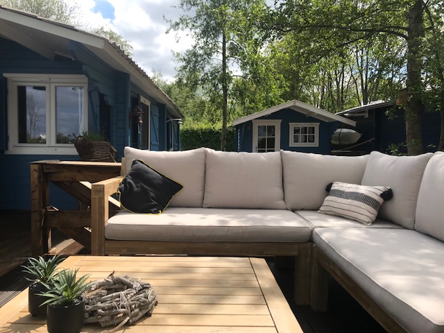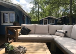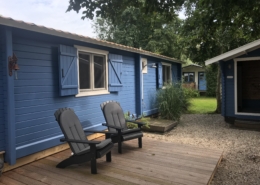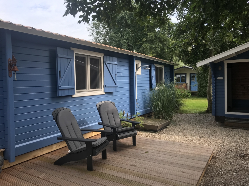 Voor het huisje is een groot terras met uitzicht over de haven en het meer. Daarnaast is er een terras aan de zijkant van het huisje. De terrassen zijn voorzien van een loungebank, terrasstoelen en een eettafel met 4 stoelen. Er is een BBQ aanwezig.