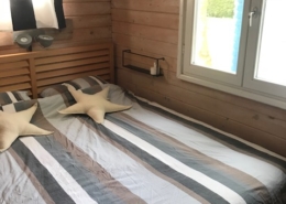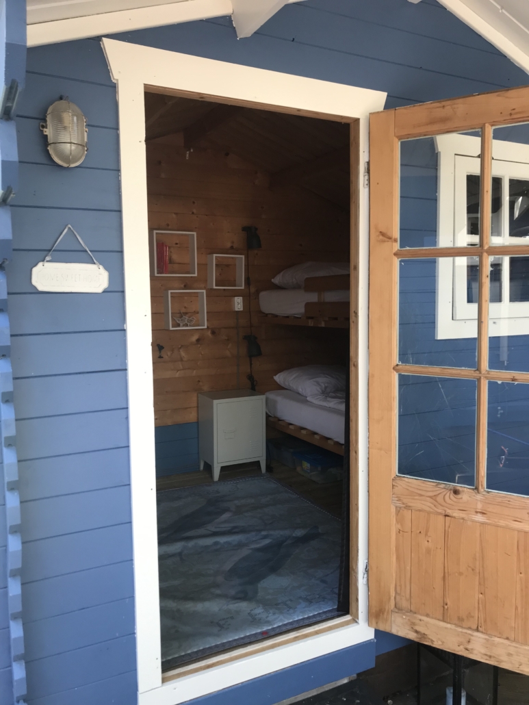 Buiten bevindt zich een mini-stugor met daarin een stapelbed met twee bedden (0.80 x 2.00).